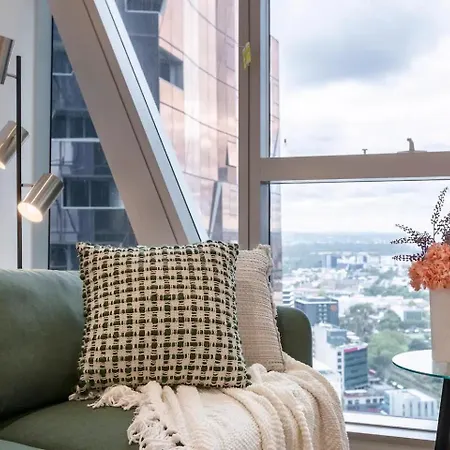 דירת דירות מלבורן Earthy Retreat in Melb's Shopping Hub with Views מציעה מטבח מצויד וכמו כן גם חדרים עם שולחן עבודה, טלוויזיה עם מסך שטוח וערוצי לוויין וגלאי עשן. האקווריום של מלבורן שוכן במרחק של פחות מ-1.6 ק"מ על דירה, בזמן שמוזיאון ההגירה זה כ-1.8 ק"מ משם.